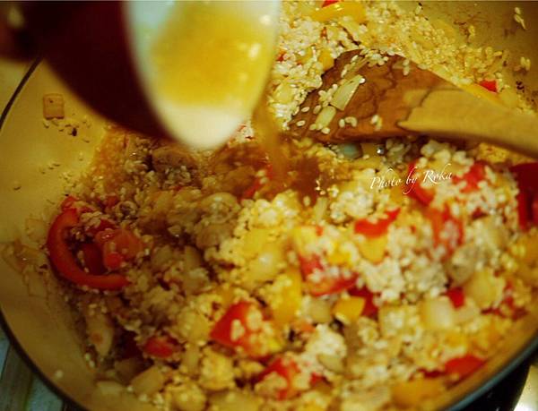 這樣在煮燉飯時分次加入高湯才不會使燉煮的米降溫