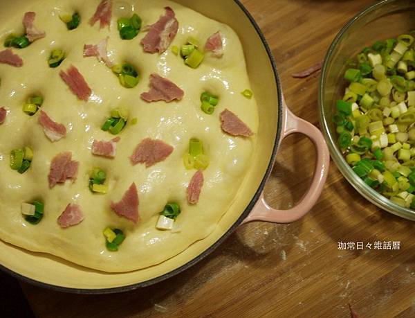 ps. 麵糰或是表面用的橄欖油若要更增加蔥香味,可事先在橄欖油內放入蔥末浸泡過夜!