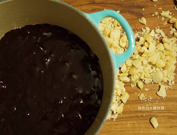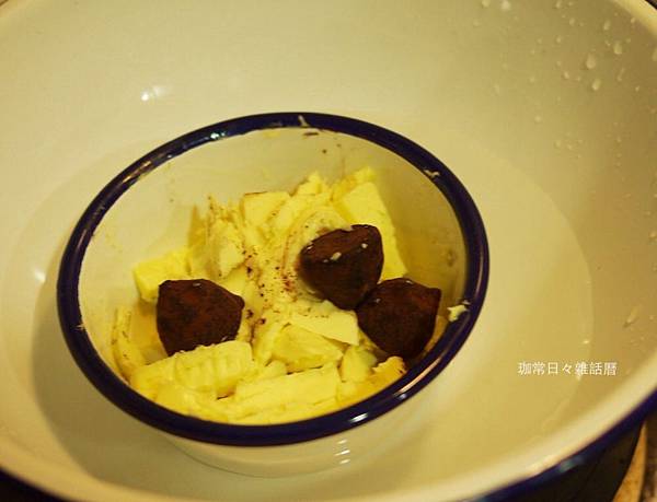 由於這天在家是臨時突然想做布朗尼,只好先用家裡有的松露巧克力先擋著用^^