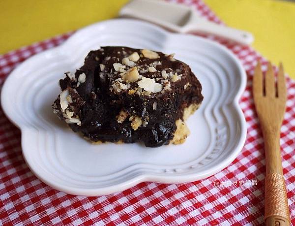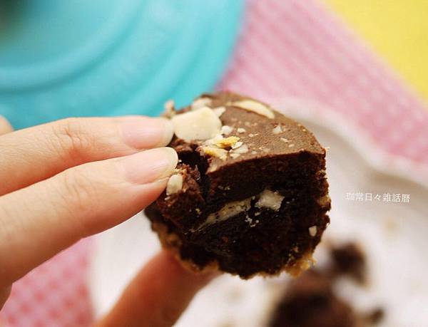 讓布朗尼整體口感層次豐富,一切開剛出爐的布朗尼還會有熔岩般的巧克力流出
