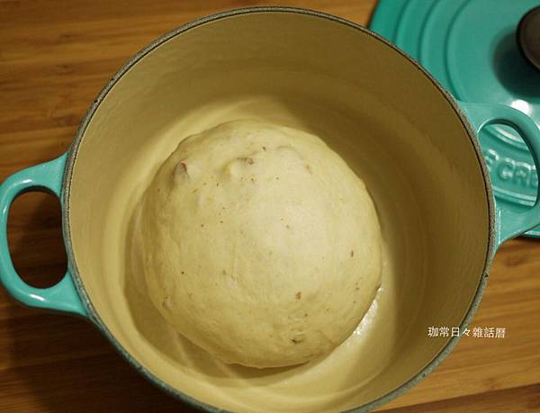 冬天則可先將烤箱加熱後待涼至30~35度,再把發酵盆(鑄鐵鍋)放進去
