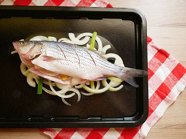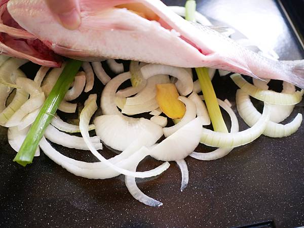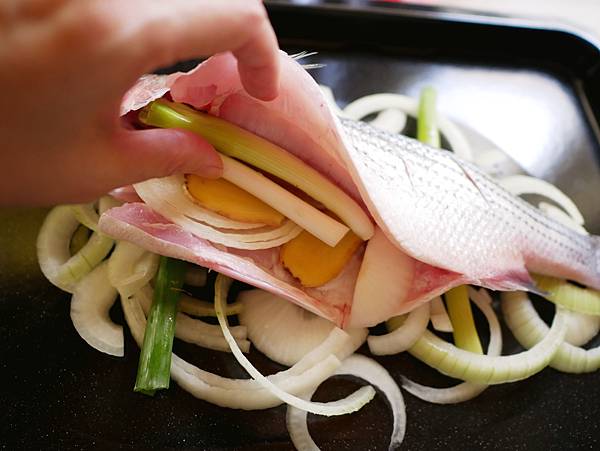 魚肚裡也塞一些洋蔥絲和薑片及蔥段