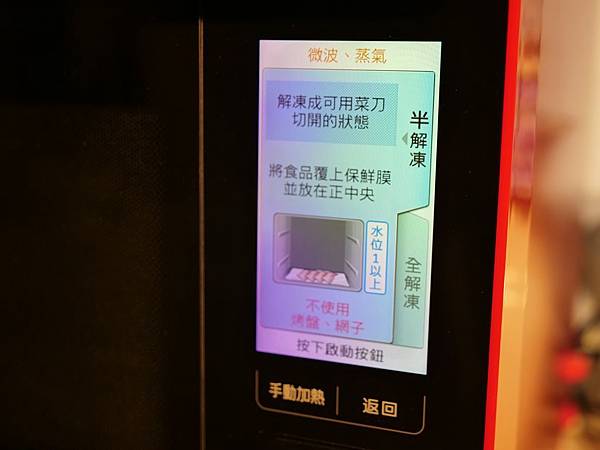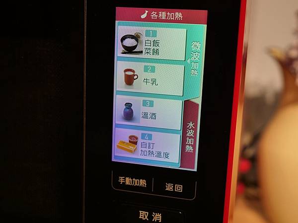 具備多種加熱方式: 隨意烹調(自動調理)/水波燒烤/保濕加熱/酥脆加熱/解凍/蒸蔬菜